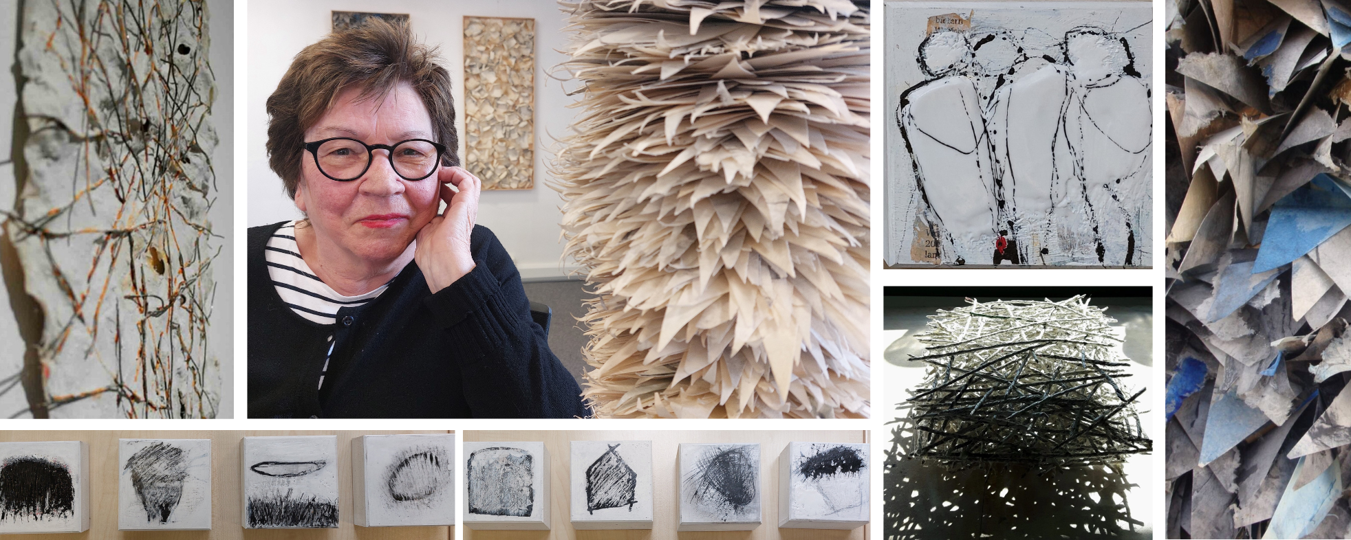 Von der Zeitung bis zum hauchdünnen Japanpapier nutzt Christine Brand, seit langen Jahren Mitglied im BBK OWL, alles Material dieses Metiers. Sie reißt, schneidet und zupft es. Sie rollt, klebt und stapelt es. So entstehen organische Formen („Flowers“) oder auch ganz bewusst streng lineare Strukturen („Silence“). Und die Künstlerin formt das Material, indem sie Papier mit Wasser zu Brei (Pulpe) verarbeitet, der sich zu Schalen oder anderen raumgreifenden Objekten veredeln lässt. Entscheidend für die Künstlerin ist immer die Wirkung ihrer Arbeiten im Raum.