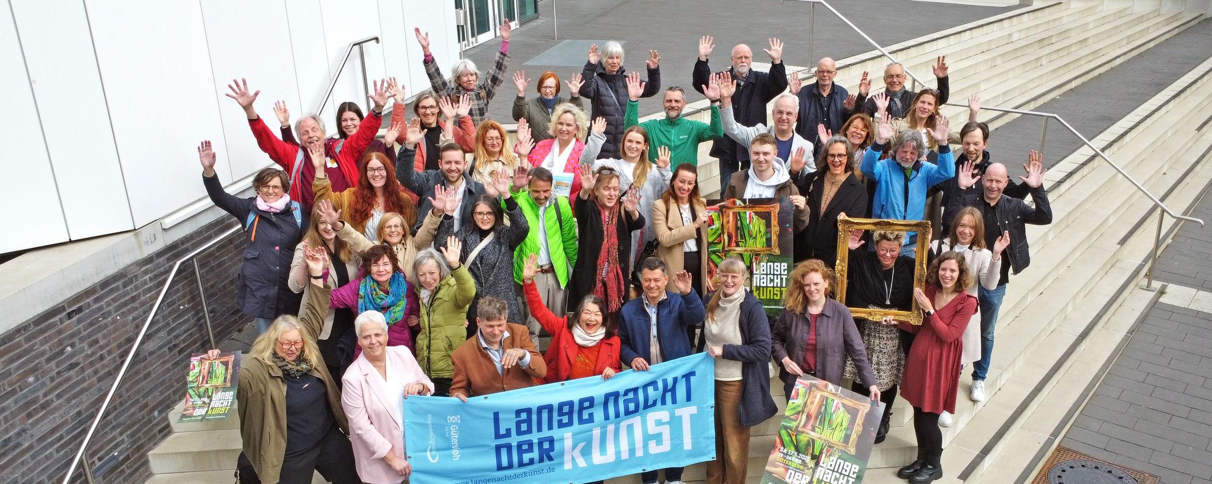 Alle Jahre gibt es diese eine unwiderstehliche Nacht im Mai: Von der Dämmerung bis nach Mitternacht zeigt sich Gütersloh bei der Langenachtderkunst weit entfernt von jeder Alltäglichkeit: Dann bestimmen Malerei und Musik, Tanz und Theater, Performances und Interaktion, Video- und Klanginstallationen, Dokumentationen und Ausstellungen das Leben in der Innenstadt. Kunst- und kulturaffine Nachtschwärmer können sich an mehr als 40 Stationen auf Spannendes, Überraschendes, Unterhaltsames, Skurriles, Experimentierfreudiges und Inspirierendes freuen. Seit 2012 fördert die Bürgerstiftung diese Großveranstaltung - und hat auch in ihren eigenen Räumlichkeiten am Alten Kirchplatz 12 immer etwas Erlebenswertes zu bieten.