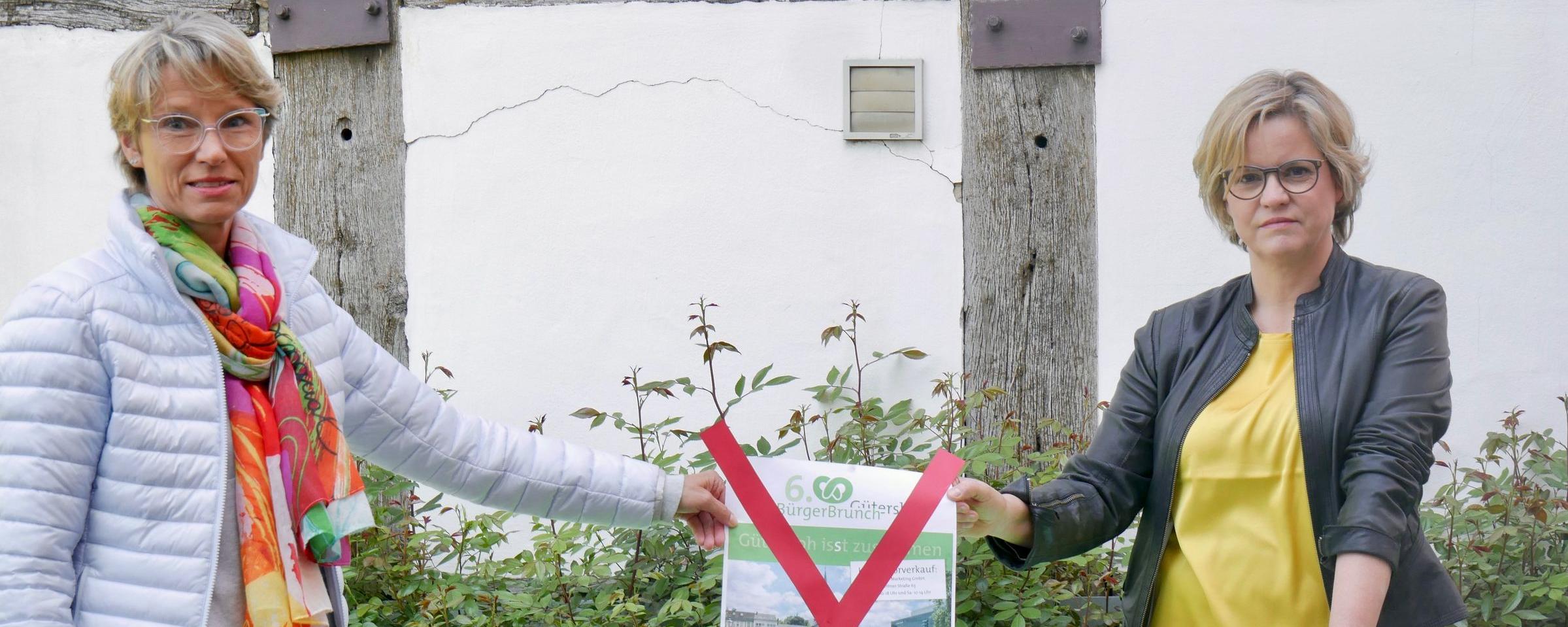 Bürgerbrunch verschoben: Die Bürgerstiftung sagt das beliebte Fest an langen, grün gedeckten Tafeln am 21. Juni ab. Brigitte Büscher (li.) und Andrea Sonnabend setzen darauf, dass der Brunch auf bessere Zeiten verschoben wird.