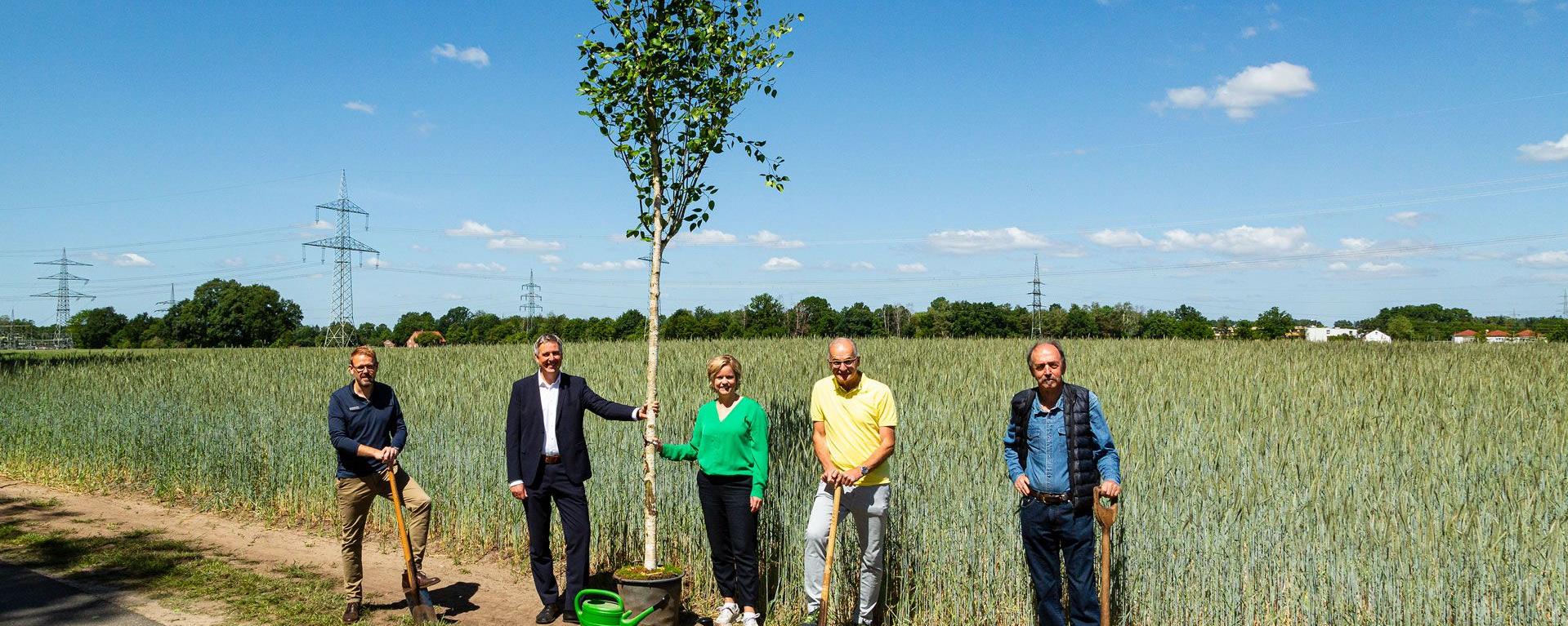 Im neuen BürgerWald möchten wir vielen Menschen die Möglichkeit geben, aktiv ein Stück Natur und Zukunft zu pflanzen“, sagt Brigitte Büscher, Sprecherin der Bürgerstiftung. „Darum waren wir sehr froh, für unsere Projektidee eines solchen Gemeinschafts-Waldes in Dirk Buddenberg, Leiter des Fachbereichs Grünflächen der Stadt Gütersloh, einen begeisterten Partner gefunden zu haben.“ Und so trafen sich zum symbolischen Spatenstich auf dem Flurstück in Gütersloh-Hollen Vertreter von Bürgerstiftung und Stadt zusammen, um für die Übernahme einer Baumpatenschaft zu werben.