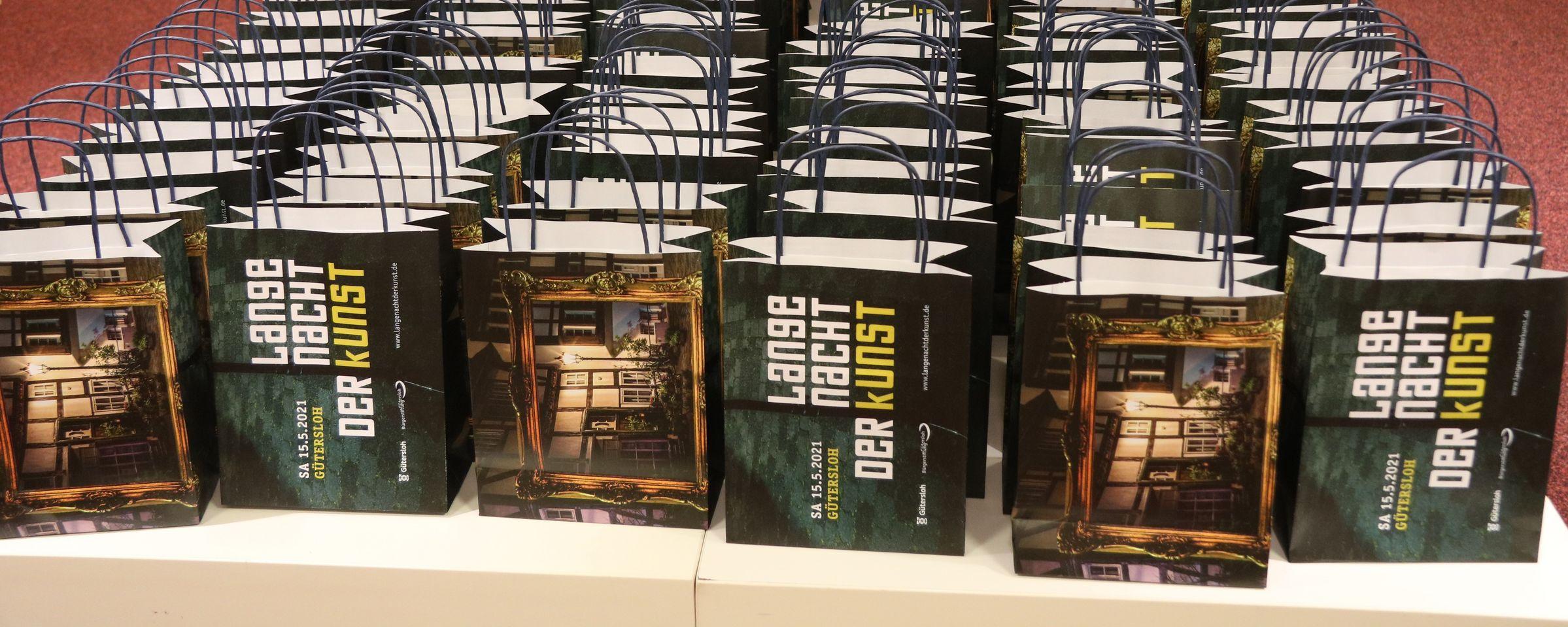 Wer sich für solch eine „Kunst-volle“ Tüte interessiert, kann diese (so lange der Vorrat reicht) kostenlos ab Samstag, 15. Mai, an folgenden Stationen abholen: Konditorei Fritzenkötter, Galerie Schenke im Bahnhof, in den Eisdielen Schleckerei und Pinguin am Dreiecksplatz und bei Gütersloh Marketing. Sie alle haben für diese Aktion von 12 bis 16 Uhr geöffnet. Ab Montag, 17. Mai, gibt’s die „Künstlerpakete“ zudem am Empfang der Stadthalle (8 – 12 Uhr) und bei der Bürgerstiftung am Alten Kirchplatz 12 (9 – 16 Uhr)