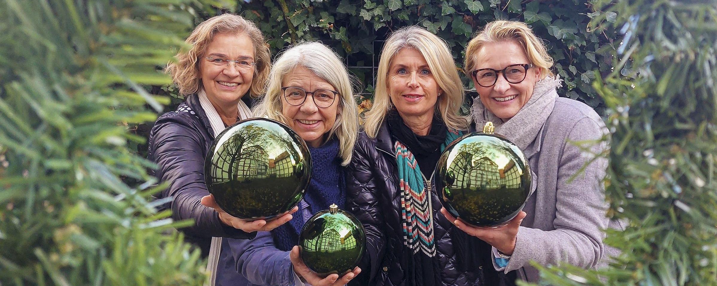 Foto: Das „WM“-Team der Bürgerstiftung lädt ein: Am Samstag, 3. Dezember, findet von 12 bis 20 Uhr wieder der Weihnachtsmarkt an der Apostelkirche statt. (v. l.) Gabi Müller, Corinna Nagels, Projektleiterin Barbara Bierfischer und Petra Falkenreck freuen sich auf viele Besucher.
