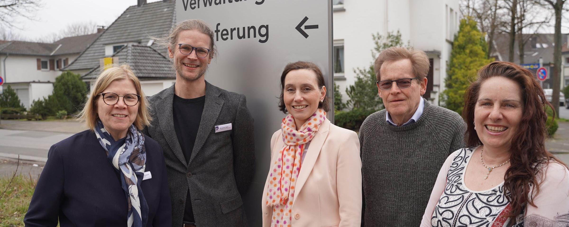 Freude auf das gemeinsame Projekt: (v. l.) Pflegedirektorin Andrea Eickhoff, Benjamin Hans (Beauftragter für Rekrutierung und Integration im Klinikum Gütersloh), Katrin Meyer, Vorstandsvorsitzende der Bürgerstiftung), Bernd Mußenbrock von der Erich und Katharina Zinkann-Stiftung sowie Maud Beste, Geschäftsführerin des Klinikums