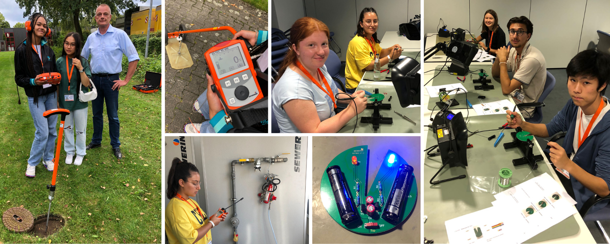 Für die Jugendlichen gab es viel zu entdecken bei Sewerin. Denn das bereits 1923 gegründete Unternehmen versteht sich heute als Partner der internationalen Gas- und Wasserversorgungswirtschaft. Sewerin entwickelt Gerätetechnik zur Wasser- und Gaslecksuche und stellt sie hier. Darüber hinaus überprüft Sewerin Rohrnetze als. Ausführlich wurden die interessierten Besucher bei ihrem Rundgang durch die verschiedenen Abteilungen - von der Planung über die Konstruktion und Erprobung bis hin zur Produktion - geführt. Sie hatten Gelegenheit, sich sowohl mit Firmenchef Benjamin Sewerin als auch mit Personalreferentin Jessica Yode, dem Ausbildungsleiter Markus Brinkmann und einem ehemaligen Azubi und mittlerweile Messe- und Eventmanager der Firma, Maximilian Höner, zu unterhalten. Dabei erhielten sie unter anderem umfangreiche Informationen über Ausbildungsmöglichkeiten und Jobchancen bei Sewerin. Danach durften die Stipendiatinnen und Stipendiaten dann auch selbst tätig werden.