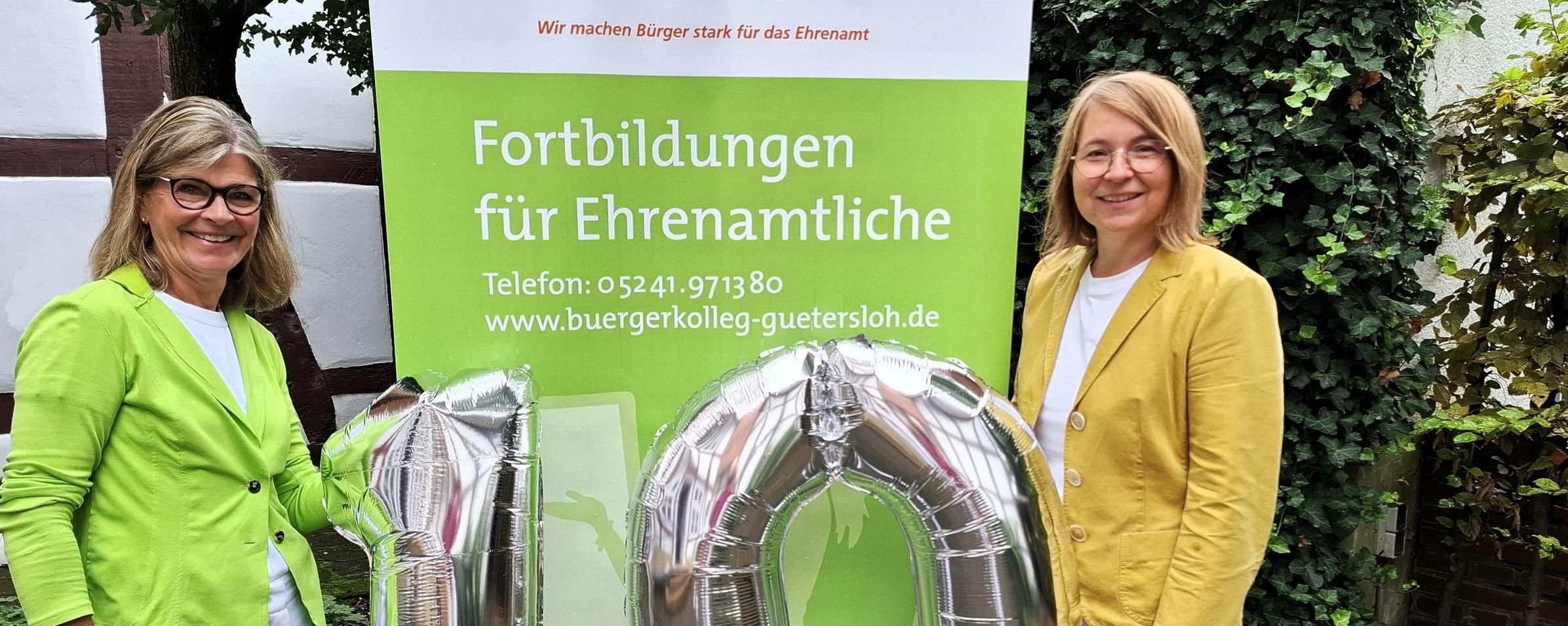 10 Jahre BürgerKolleg Gütersloh: Projektleiterin Birgit Troßbach (links) und Nina Spallek als Geschäftsführerin der Bürgerstiftung, die diese Managementschule für Ehrenamtliche trägt, freuen sich über den Erfolg.