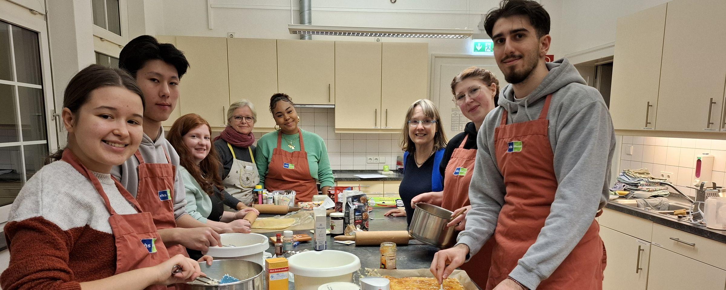 In Zweierteams gingen Diana und Margad, Natalia und Olivia, Loona und George ans Werk. Da wurde eifrig gewogen, gerührt, gemixt, geknetet, gerollt, ausgestochen und gebacken, mit Schokoguss marmoriert und am Ende liebevoll verziert. Eifrig tauschten die jungen Plätzchenspezialisten Backtipps und -tricks aus, plauderten angeregt miteinander. Zwischendurch wurde gut gelaunt das ein oder andere Weihnachtslied mitgesummt und natürlich auch mal genascht. Die Weihnachtsbäckerei war für die Stipendiat*innen die letzte gemeinsame Freizeitaktion in diesem Jahr. 2025 geht’s weiter.