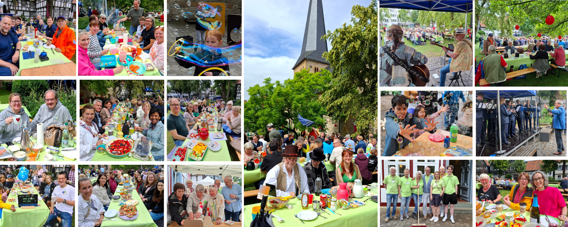 Auf der grünen Wiese, eingerahmt von Bäumen, Büschen und dem idyllischen Fachkwerkrund an der Apostelkirche, ließ es sich ganz wunderbar brunchen. Familien, Freunde, Nachbarn, Vereinskollegen, Verbände, Serviceclubs und Gruppen mit internationalem Flair sorgten im gut gelaunten Miteinander für ein wunderbar fröhlich-buntes Bild. „Der Geist, der hier und heute über diesen Platz weht, ist einfach toll. Solch eine positive Stimmung, das tut uns allen doch mal richtig gut“, brachte es ein Gast treffend auf den Punkt. Das Motto des Tages „Gütersloh is(s)t zusammen“ wurde auf perfekte Weise lebendig.
