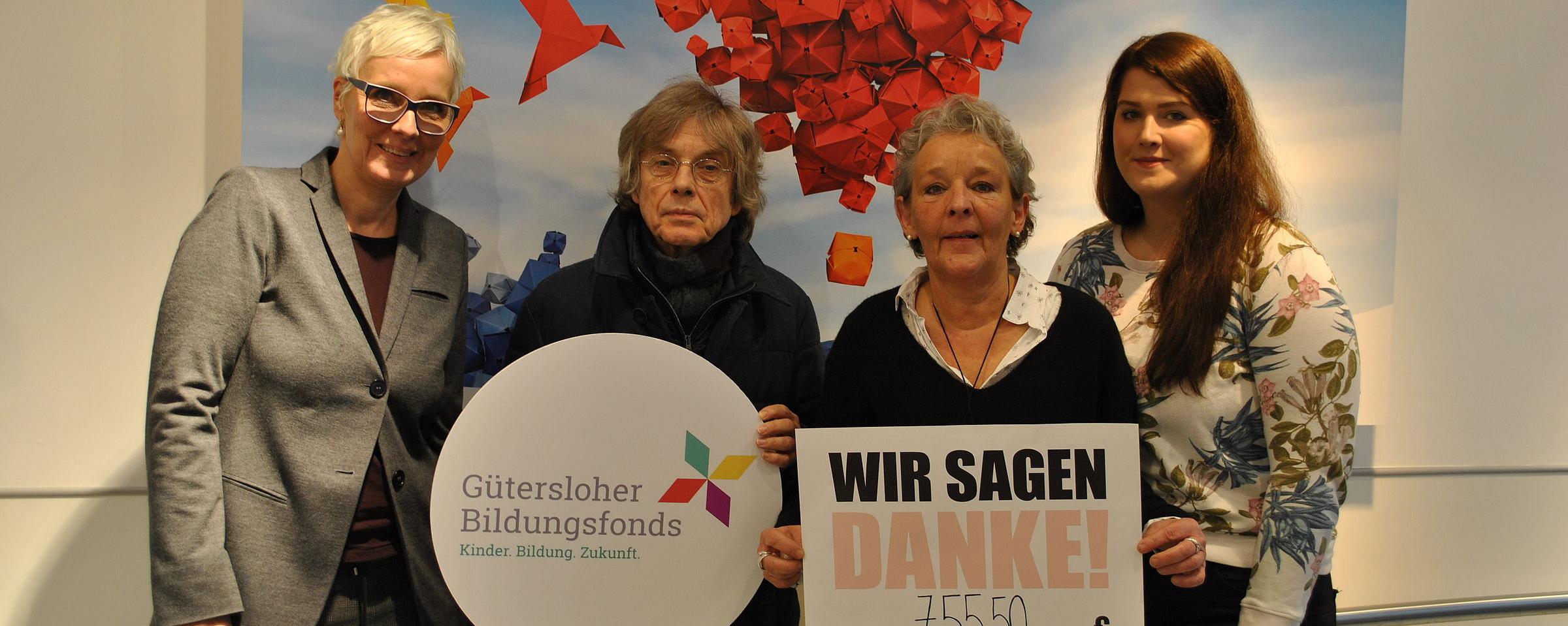 „Wir freuen uns sehr darüber, dass es solche Spendenpartner gibt. Um den Fonds nachhaltig in Gütersloh etablieren zu können, braucht es weiter viele Förderer und Unterstützer. Neue Spender, Förderer und Partner sind uns deshalb herzlich willkommen und wir beraten sie sehr gerne“, sagt Kirsten Zink, Projektleiterin Gütersloher Bildungsfonds, Telefon 97130. Informationen auch unter www.guetersloher-bildungsfonds.de
