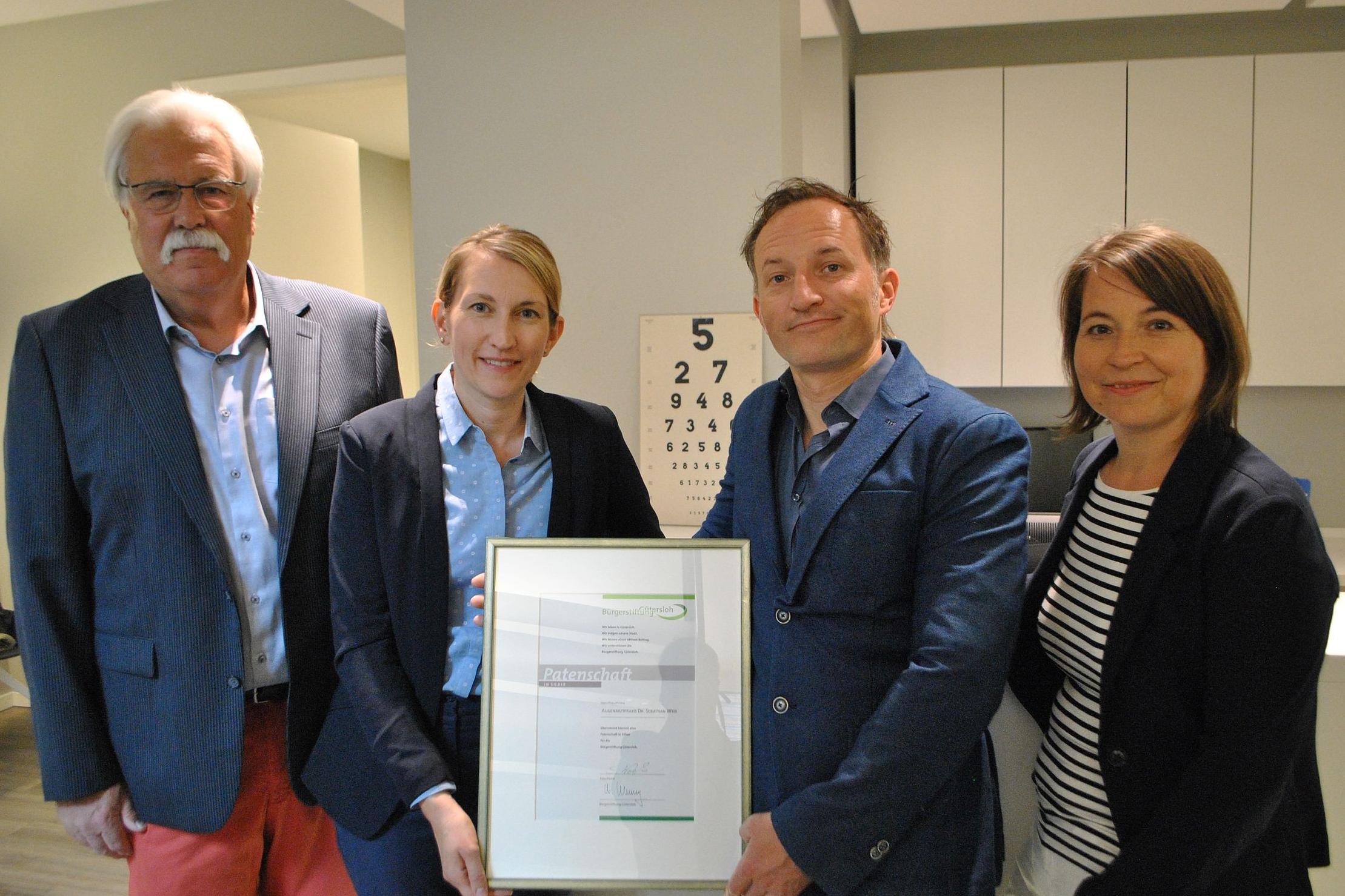 Als gebürtiger Gütersloher der achten Generation fühlt sich Dr. Sebastian Weiß seiner Heimatstadt ganz besonders verbunden. Deshalb hat er mit seiner Augenarztpraxis eine silberne Patenschaft für die Bürgerstiftung Gütersloh übernommen.