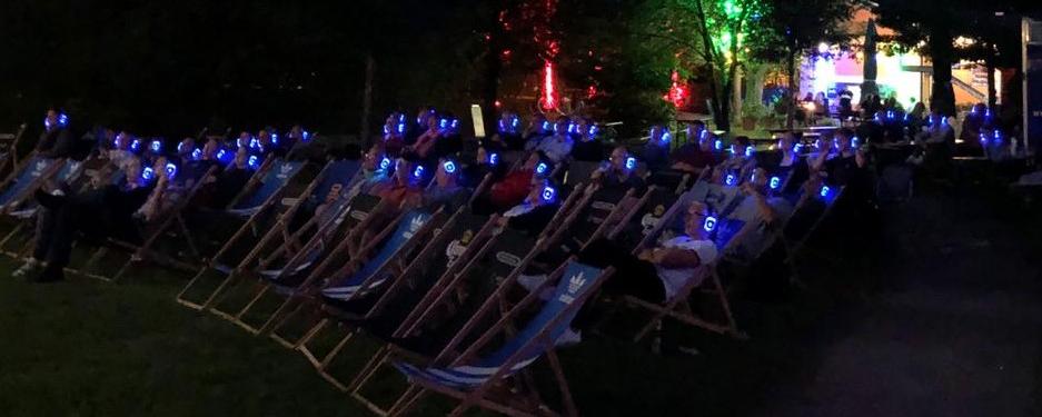 Der Bürgerkiez an der Bogenstraße lockte mit jeweils zwei Kultstreifen. Los ging es nach Sonnenuntergang, gegen 21.30 Uhr. Genießen konnte man die Filme mit einem Funkkopfhörer, der für eine Schutzgebühr von fünf Euro geliehen werden konnte.
