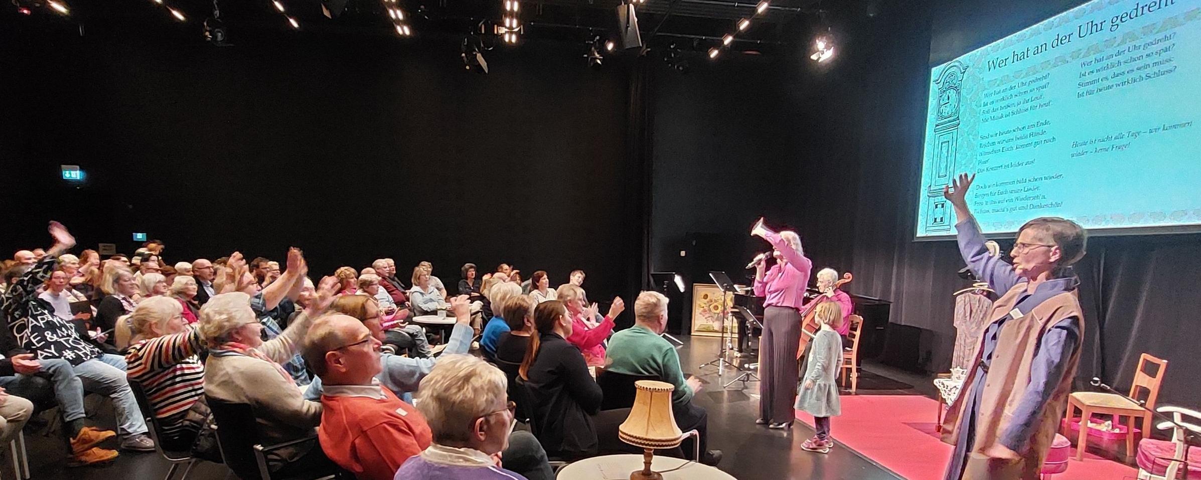 Für die Konzerte wird die Studiobühne des Theaters eigens zu einer Art Café umgebaut. Denn die Senioren sollen nicht in ungewohnter Umgebung „fremdeln“, sondern sich wohlfühlen, um die zielgruppenorientiert moderierten Veranstaltungen ungestört genießen zu können – zusammen mit ihren Angehörigen oder Pflegekräften und allen Interessenten, die dieses neue Angebot kennenlernen möchten.